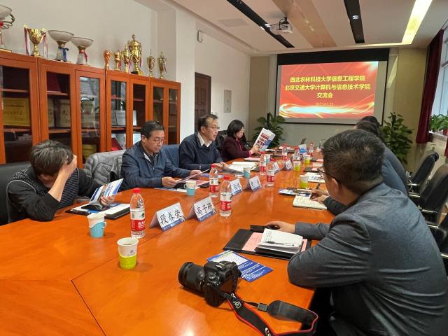 2023年3月23日下午,西北农林科技大学信息工程学院党委书记党青、院长兼党委副书记张宏鸣等一行四人来计算机学院调研,与计算机学院院长蔡伯根、党委书记贾卓生等教师进行交流。
