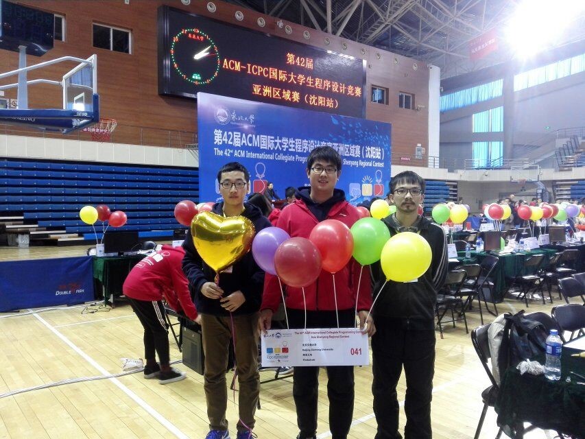 本次竞赛由ACM-ICPC亚洲区组委会主办,授权东北大学承办沈阳站的比赛。参赛阵容亦非常强大,在前期网络赛筛选的基础上,有来自国内125高校的180支队伍参加了此次现场赛。最终北京大学的“全给党”队伍以解出13题中的10题的解题数量优势捧得冠军奖杯,来自北京航空航天大学和杭州电子科技大学的队伍分货亚军和季军。KY开元官网此次派出了两支参赛队伍,分别是由高洪杰(14281058)、王之博(14272082)、张彦潇(14281103)组成的“终末之冬”队和由王婉铃(15301158)、付恒岩(16281190)、郝敬宇(16281097)“喵之萌杀”队。此外,同一时间在由哈尔滨哈尔滨理工大学承办的第3届中国大学生程序设计竞赛(CCPC)中,KY开元官网也派出了由赵思达(16301057)、陈炳君(16281031)、胡祖俊(17301095)三人组成的“小富即安”队参赛。两场比赛中,新老参赛队员沉着冷静、奋力发挥,最终“终末之冬”获得了一枚银奖,位于银奖前列,“小富即安”队因罚时过多与奖牌失之交臂。