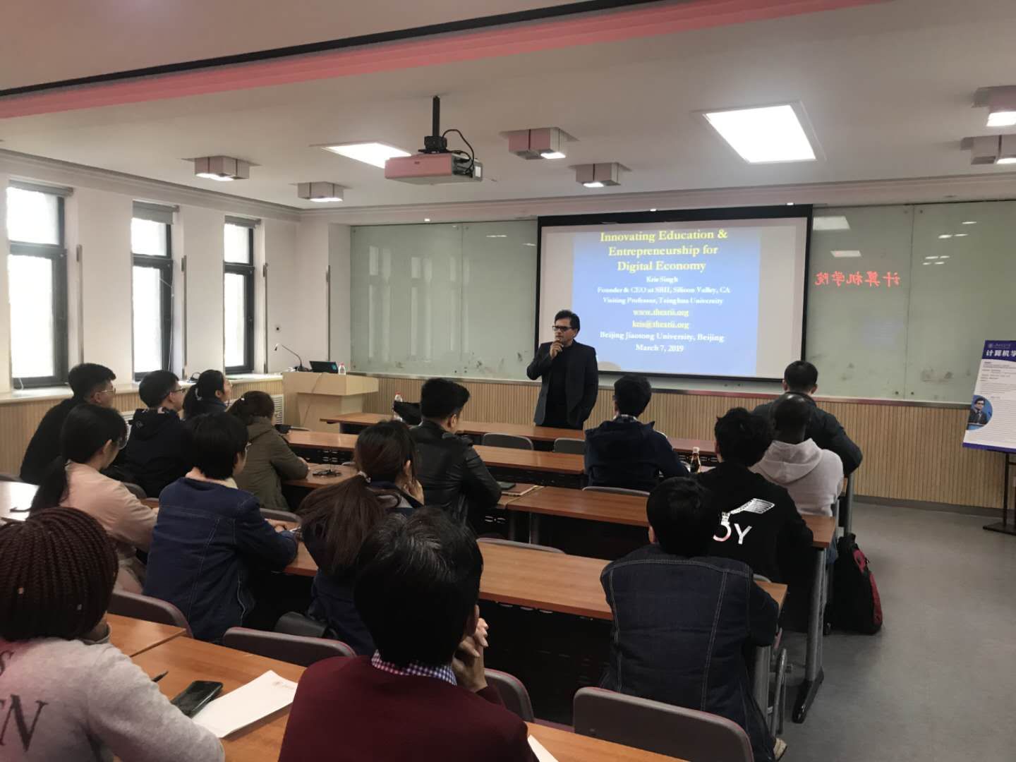 2019年3月7日,计算机学院“知行讲堂”第七期邀请到SRII公司创始人与CEO Kris Singh教授,做了题为《数字经济下的创新教育与创业》的精彩报告。