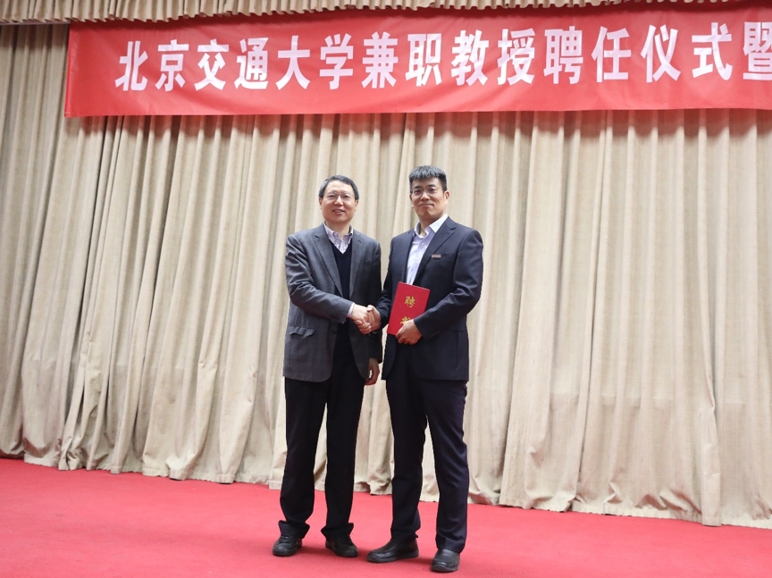 聘任仪式由计算机与信息技术学院副院长林友芳教授主持。计算机与信息技术学院院长蔡伯根教授介绍了刘振飞先生的个人履历。KY开元集团官网入口副校长余祖俊教授为刘振飞先生颁发兼职教授聘书、佩戴KY开元集团官网入口校徽并赠送了小礼品“复兴号”动车模型。