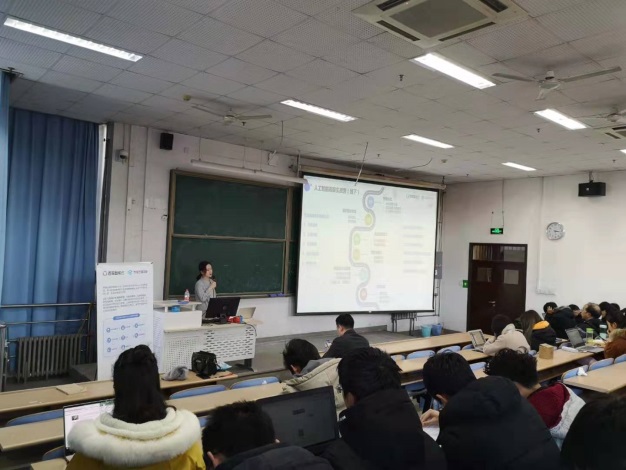 本次讲座邀请了百度云智学院产品经理王江天先生与张湘悦女士作为主讲人。王江天先生首先向同学们阐述了AI发展的黄金时代,介绍了开源深度学习平台,分享了人工智能在无人驾驶、人脸识别等多领域具体应用。随后张湘悦女士介绍了百度云智学院和百度开发者中心日常的运营活动,分享了AI相关的学习资源,引发了同学们热烈的反响。同时,讲座中也介绍了当前火热的人工智能无人驾驶技术的发展状况以及行业人才需求,对同学们的专业认知、专业学习和职业规划起到了指导和促进作用。