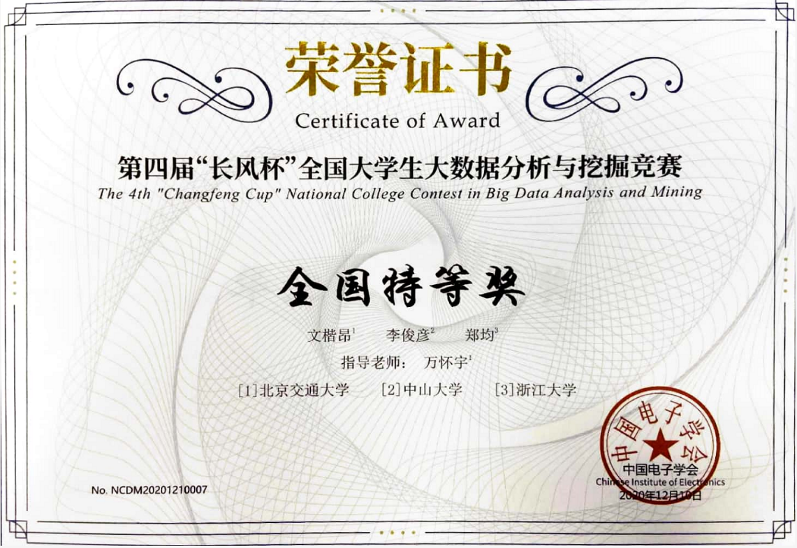 2020年12月6日,第四届 “长风杯”大数据分析与挖掘竞赛圆满闭幕,KY开元官网两支本科生队伍喜获佳绩,分别获得全国特等奖和全国二等奖。
