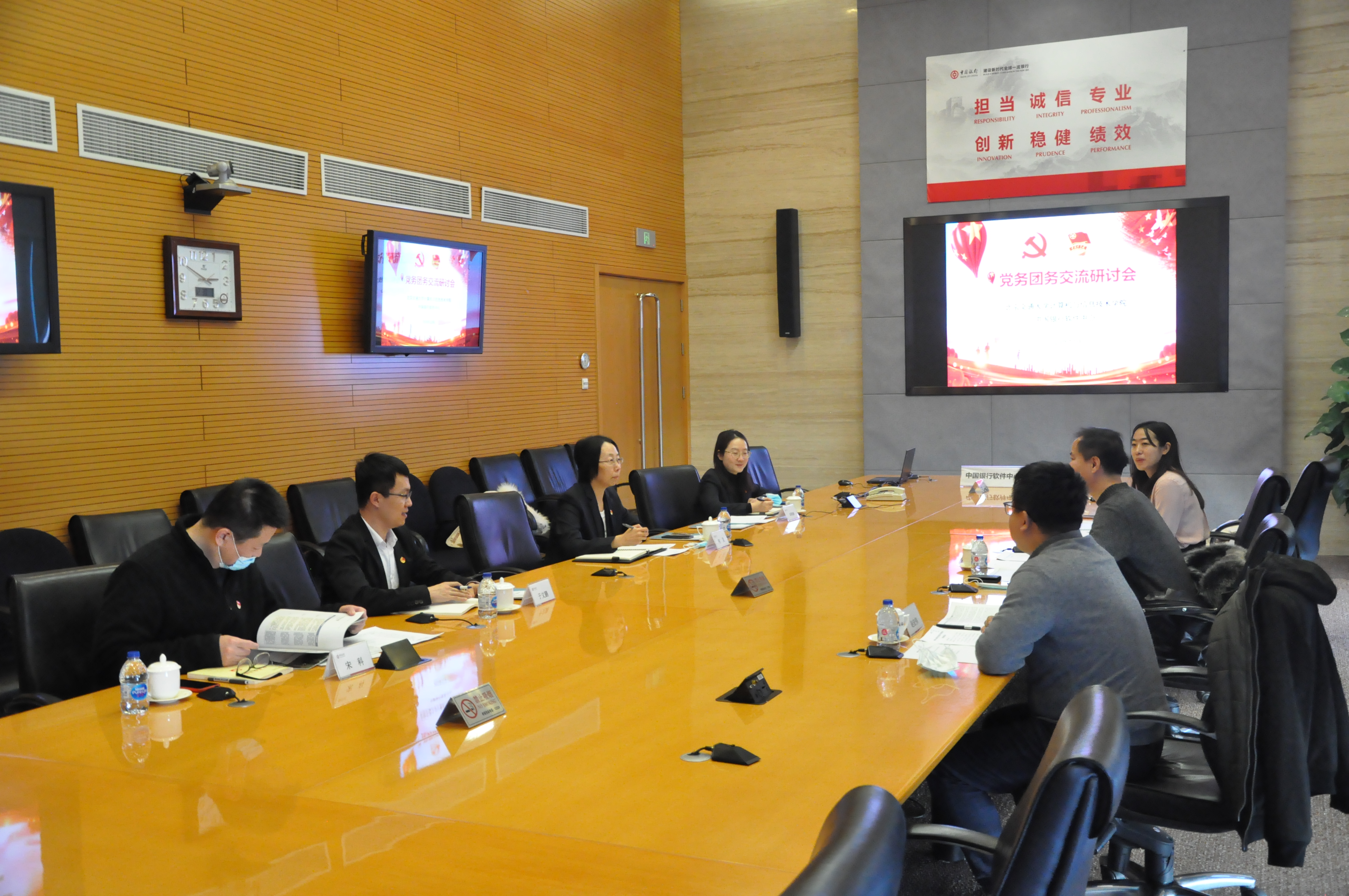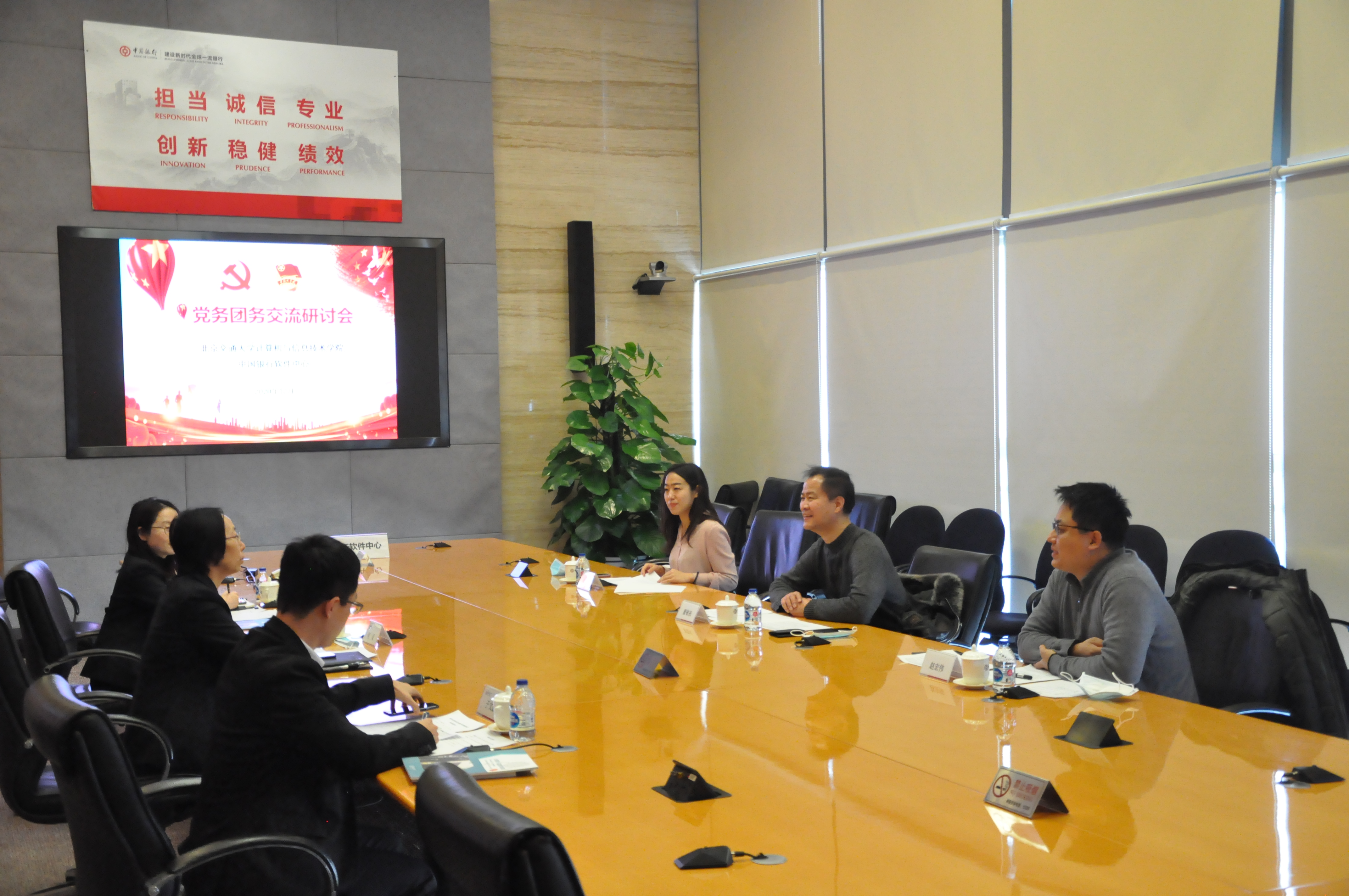 2020年12月31日下午,计算机学院副书记兼副院长董敬祝、研究生服务中心主任赵宏伟、研究生辅导员周艺走访了中国银行软件中心,与中国银行软件中心党务工作部主管、团委书记何灵等相关负责人就联合党建、团建、校企合作等方面进行了深入交流。
