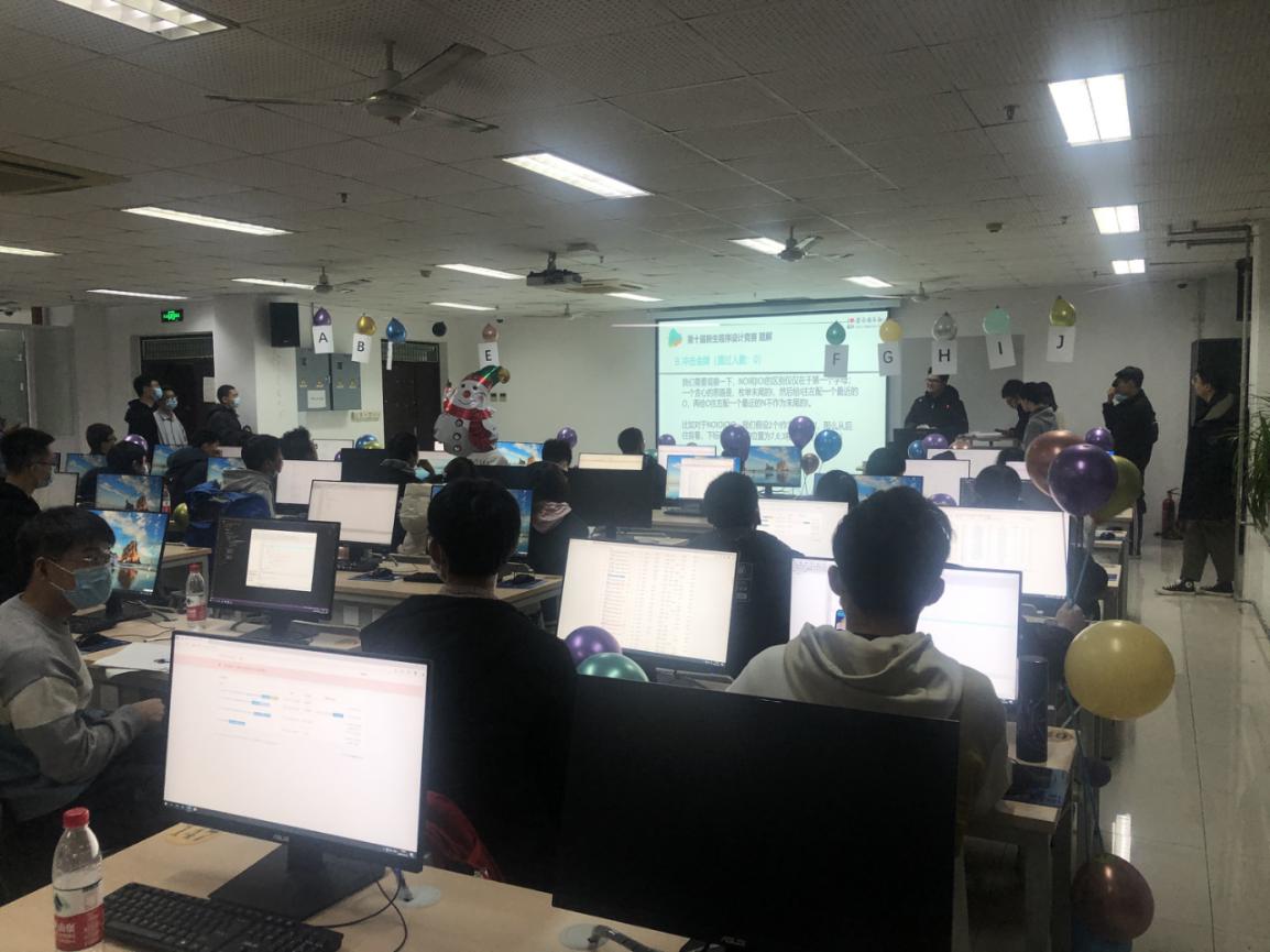 此次新生程序设计竞赛共有来自全校12学院的438名学生报名参加,蓝桥杯选拔赛有来自全校12个学院的186名同学报名参赛。鉴于报名参赛的人数已远远超出机房现场的容量,本次比赛在12月5日启用了网络预赛,经过代码查重等环节,根据机房容量确定了现场赛的参赛资格。本次赛事活动还邀请了北师、北理、地大及清华、哈工大等兄弟院校的部分同学以线上模式参赛。本次比赛开创了“一校三区”的办赛模式,同一份赛题、同一个排行榜单,在保障比赛公平、公正和安全的前提下,比赛在主校区、东校区和威海校区的机房同时开展。两项赛事、同一榜单、相同赛题、三个赛区,初生牛犊和经年老鸟在同一个平台上同台竞技、展示能力、切磋技艺。三个现场参赛的同学都只能访问同一个比赛服务器,查看同一个排行榜单,除此之外不能访问任何其他网络资源;参赛选手提交的所有代码均由机器依据数据自动进行评测,排除了人为因素,保障了赛事的公平公正。