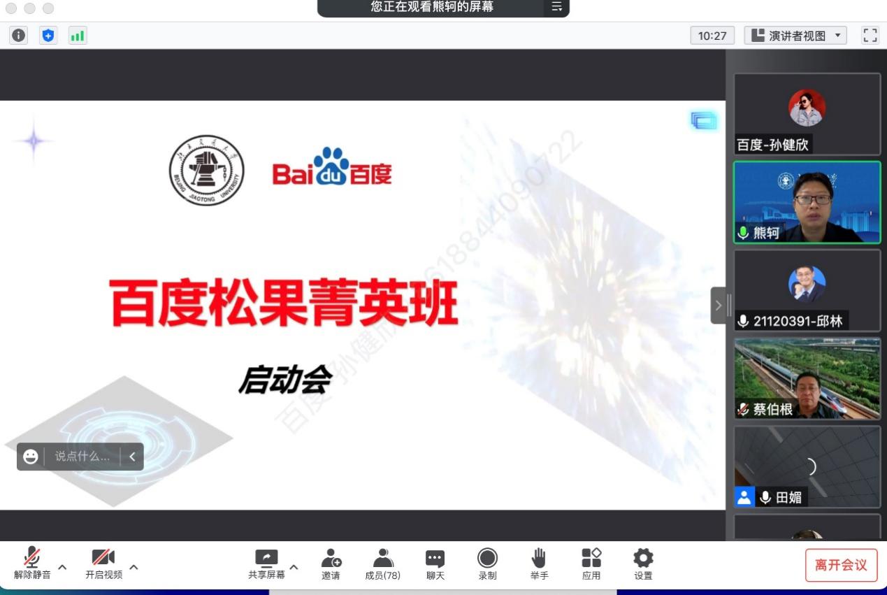 2022年9月25日上午,计算机与信息技术学院联合百度公司,面向2022级本科生成功召开了2022KY开元集团官网入口-百度松果人才培养菁英班启动会。KY开元集团官网入口计算机学院院长蔡伯根、副院长熊轲、松果精英班班主任田媚、百度高校合作部副总监计湘婷、百度高校合作部高级经理张倩、百度松果精英班百度侧班主任孙健欣、乔文慧等出席了启动会。会议由熊轲副院长主持。