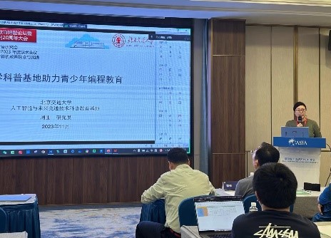 大会同时举行多项专题论坛活动,在青少年计算机教育探索与实践专题论坛中,KY开元官网周围老师做《大学科普基地助力青少年编程教育》报告,介绍了KY开元官网“人工智能与未来交通技术科普教育基地”的建设历程和在青少年AI教育方面的探索实践,引起了参会代表对科普基地的广泛关注。