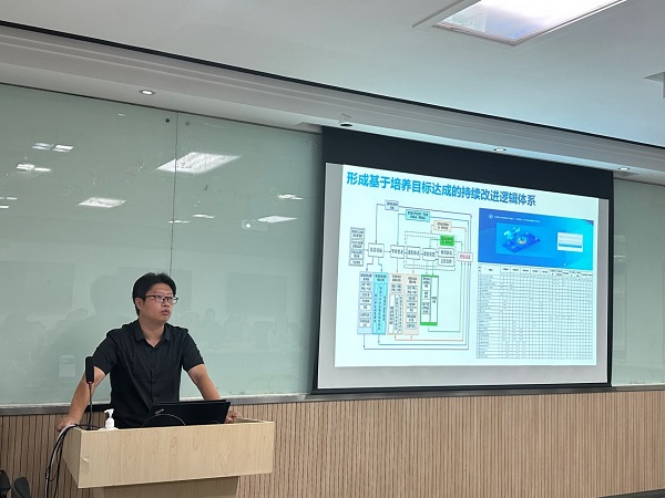 熊轲首先代表计算机学院从重视本科人才培养工作和质量、坚持党对本科人才培养的指导与引领、本科专业布局、师资结构、课程体系、教学资源、实践教学环境、闭环质量监控体系等工作的建设成效汇报了计算机学院本科教育教学工作的总体情况,并将本科专业内涵建设中涉及的学院教师承担专业多课时重、拔尖学生培养、教材编写、一流课程、实践平台等问题的现状与举措做了详细阐述。