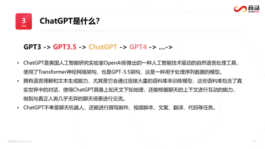 最后,马锴老师对最近爆火的OpenAI——ChatGPT模型做了详细讲解,阐述了ChatGPT的发展脉络,并对GPT4以及微软New Bing的嵌入搜索功能进行了对比展示,包括代码能力,空间理解能力,音乐能力等方面。此外,报告中还针对人工智能目前可能涉及的工程伦理问题进行了讨论。