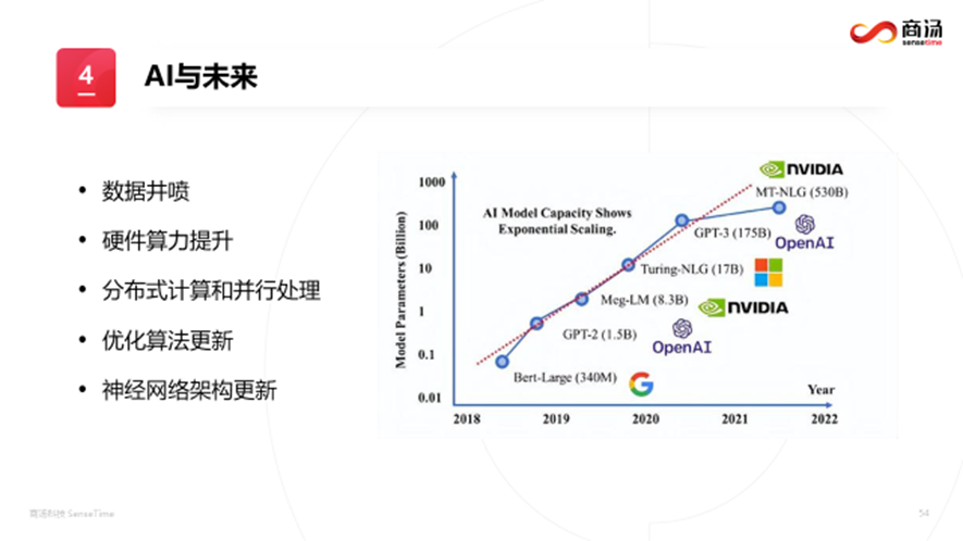 同时,马锴老师还介绍了商汤科技的发展历史,对公司的发展情况和其公司的在AI三大基础设施:模型层,深度学习平台,计算基础设施做了介绍。详细解释了AI目前赋能广泛的应用场景,比如:智慧城市,人流量管理,交通管理等场景。