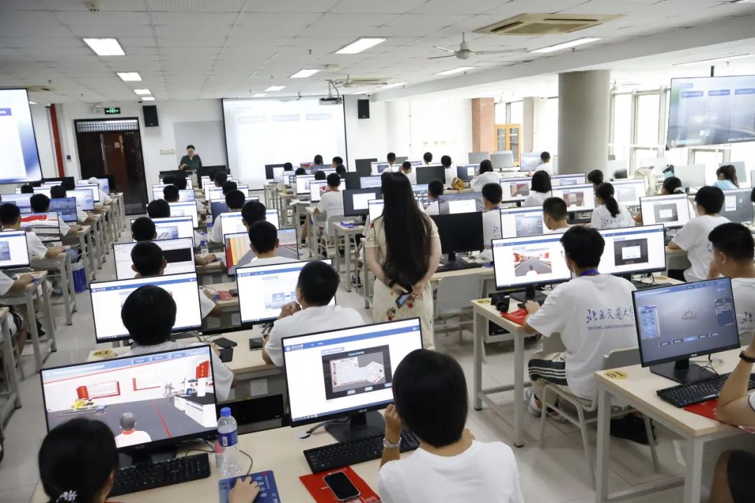 7月22日、23日,来自全国各地的172名高中生新朋友,分三组在逸夫楼实验室参加了“AI+轨道运维实践——高铁轨道巡检视觉感知”探索活动。教师团队精心准备了技术讲解、虚拟仿真实验、快问快答、轨道巡检车参观等丰富有趣的环节,并设置了循序渐进的三个模块学习内容:“认知—传感器”模块,了解铁路发展历程、传承高铁精神,熟悉轨道基础设施构成,掌握巡检用视觉传感器工作原理及巡检方法;“系统—轨道巡检视觉感知”模块,了解视觉感知系统的构建方法,执行不同环境下的轨道巡检任务;“智能—轨道病害识别”模块,了解基于机器视觉以及自主研发“天佑大模型”轨道病害识别工作原理,体验病害识别的程序设计和实现流程。