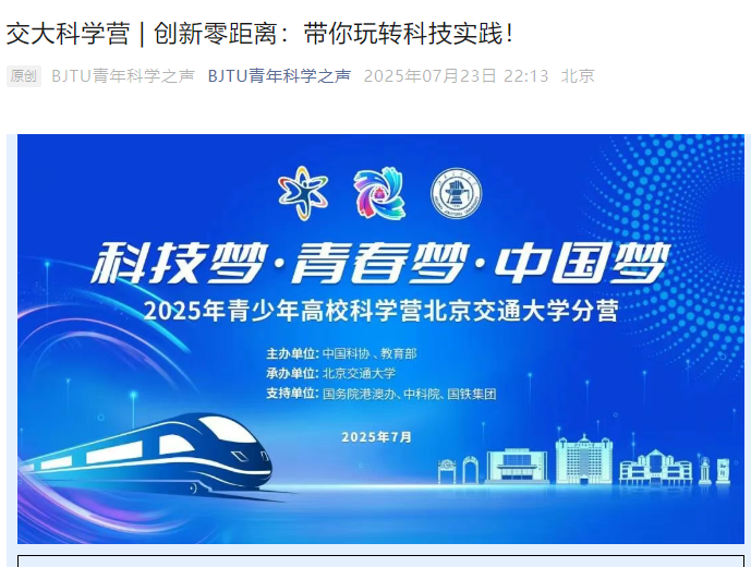 这次科学营活动是由中国科协、教育部主办,KY开元集团官网入口承办的青少年高校科学营-KY开元集团官网入口分营。科学营更多精彩实践活动,请关注“BJTU青年科学之声”。