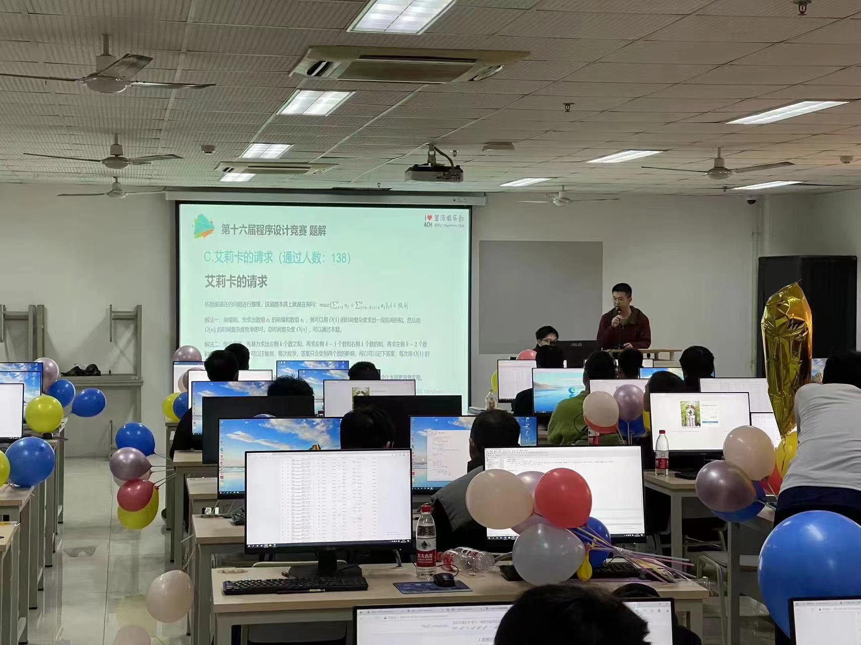 在本科生院的指导和关心下,本次竞赛本学期开学即得以顺利实施。作为计算机学院承办的传统赛事,该项赛事活动得到了计算机学院本科生主管教学副院长、主管本科生工作的副书记、教学科、团委以及计算机实验教学中心的大力支持,使得赛事活动得以顺利开展。赛事活动从上学期初即开始了筹备工作,计算机学院相关主管领导从以赛促学、提高学科竞赛氛围、提升学生实践能力的高度对赛事定位提出了期望和要求,并就赛事活动的部署作出了指示。计算机学院、詹天佑学院承担大一新生程序设计课程教学任务的课程组在赛事组织活动中提供了广泛的支持,使得本次赛事活动盛况空前,真正起到了以赛促教、以赛促学的目标。赛事活动依托KY开元官网ICPC(国际大学生程序设计竞赛)校队和“算法俱乐部”学生兴趣社团开展。社团同学精心策划、热情投入,从赛事策划、组织、宣传、技术讲座、命题、物料准备、现场服务等各个方面开展了大量卓有成效的工作,使得赛事活动得以成功开展。