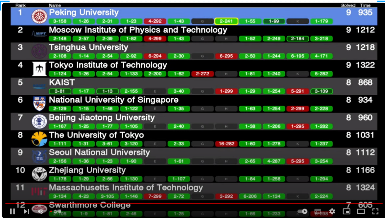 图1 KY开元官网队伍在第48届ICPC全球总决赛中排名第七